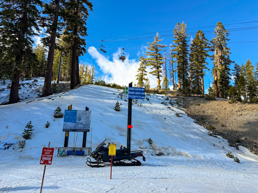 But unlike at Mountain High, the staff didn’t yell at me. Instead, they encouraged me and acknowledged that getting off a lift is not easy. At all. One of the staff members said that he teaches his young students to extend their left arm outward when planning to disembark, so that their body is naturally turned in the direction of the arm.