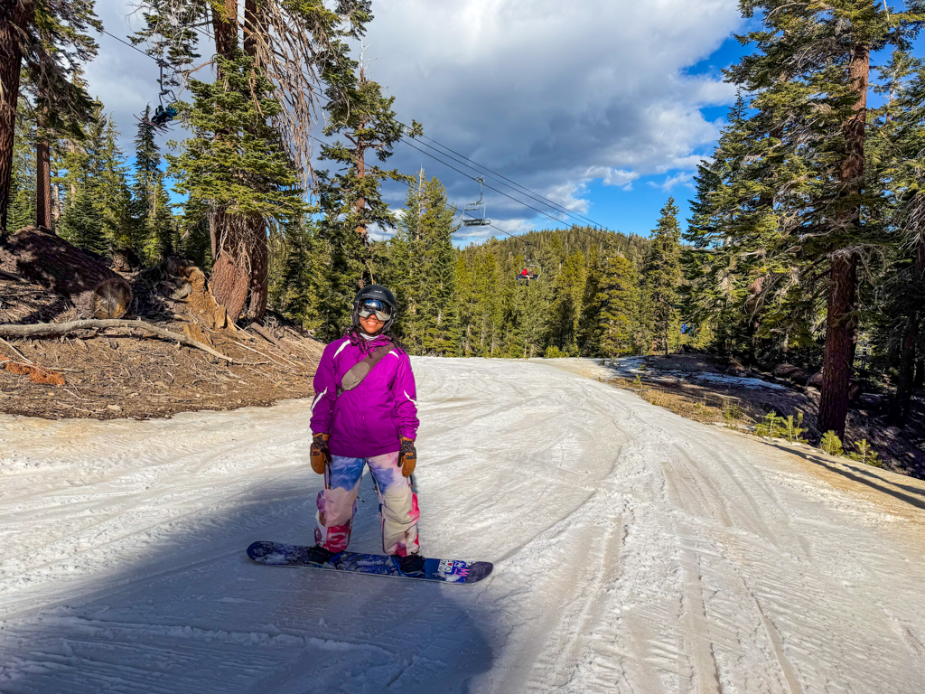 Slowly, I got use to the feeling of snowboarding on slushy snow.