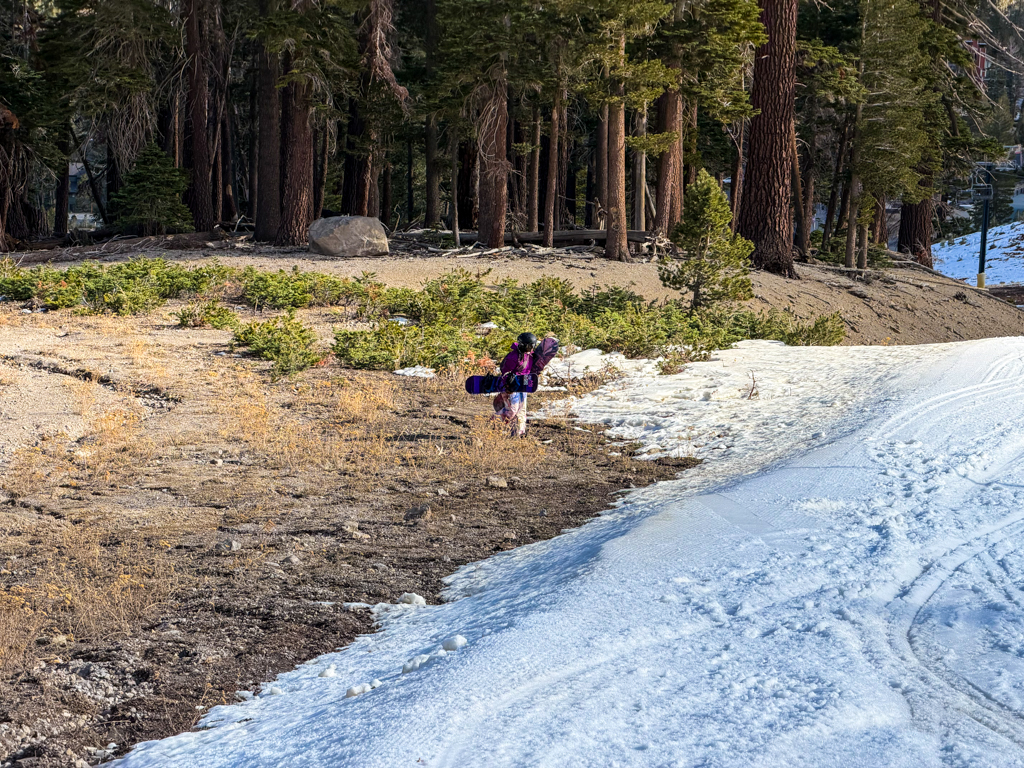 It was a sight of comedy, for sure. Both Deja and I were shocked and likewise amused as my board slid away from me, down the run and to the left. It stoped in a group of rocks and Deja kindly retrieved it for me. As I made my way down – first stopping the slide and then walking, we were both simply stunned.