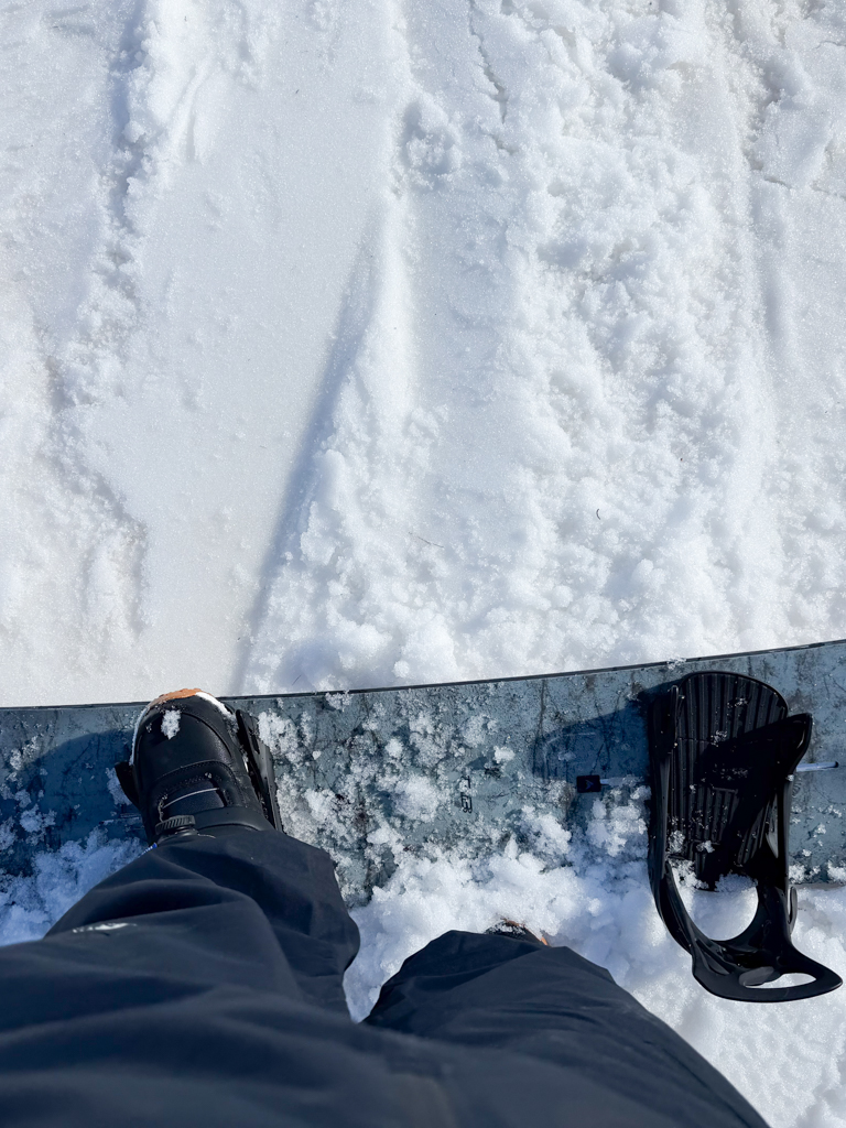 But this time, I personally decided to snowboard with my right foot unclipped in my step on. Instead of forcing my body to do something that it didn’t feel comfortable with – I choose to do something that made me feel more in control of the situation.