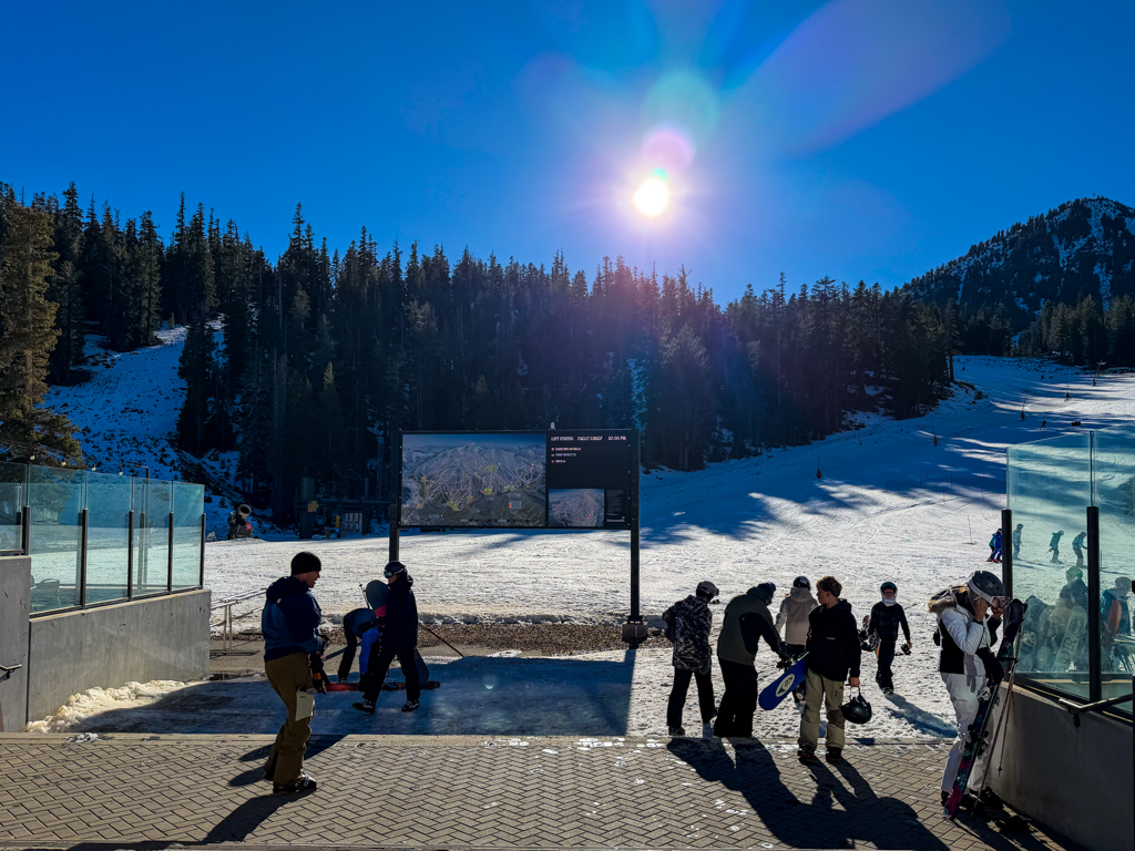 Clipping out, I walked over to the benches and brought myself into focus. I had one singular goal: get down the mountain. As Deja and I got ready, I watched people get off Schoolyard Express. Some hit it at their first try. Others fell just like I did. This shifted my focus out of “I fucked up” to “hey – this is fine.”