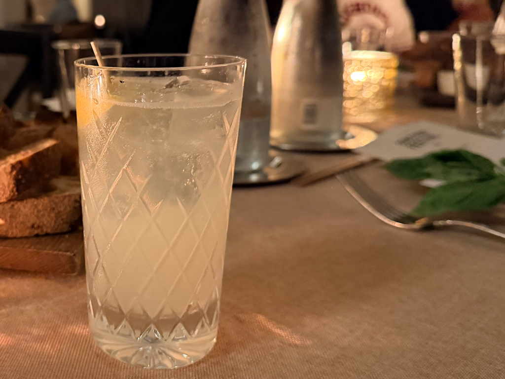 evian Sparkling, gin, Seedlip Garden, lime, basil Non-