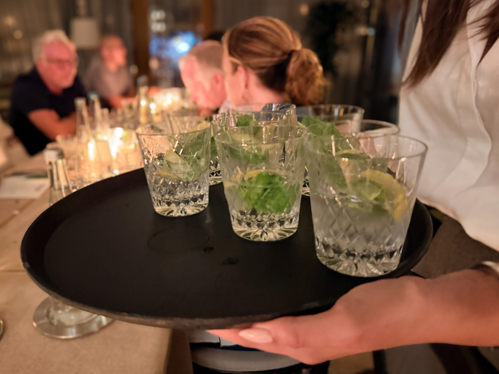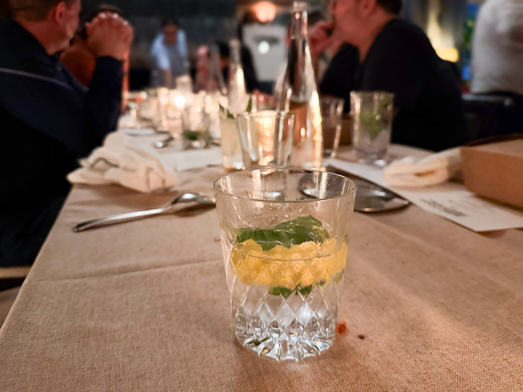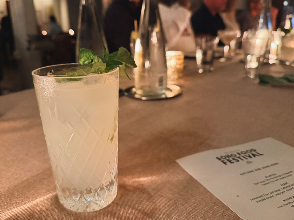 The table design set the tone: intimate yet inviting. Every detail spoke to thoughtful curation – from the soft candlelight glinting off the glassware to the fragrant basil sprig tucked into the evening’s cocktail recipe card.