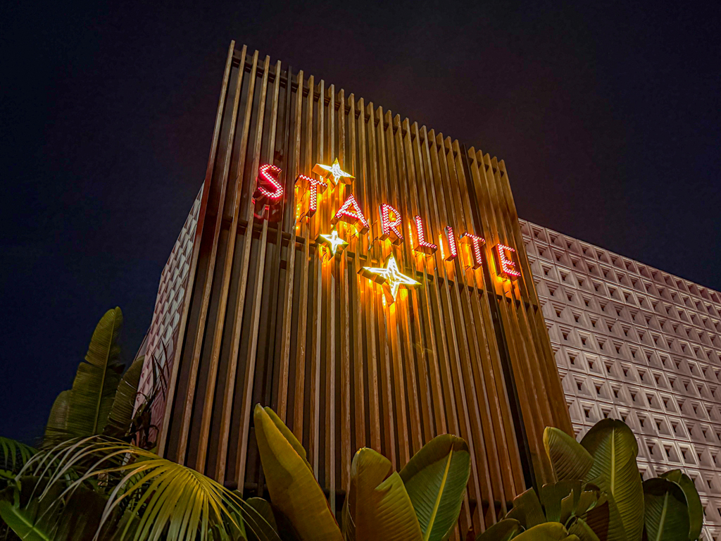 Some places are so visually arresting that a single photo can inspire an entire trip, and for me, that place was Starlite in San Diego. After first seeing its stunning, mid century inspired interior on social media, I was captivated by the intimate atmosphere and the jaw-dropping geometric lighting installation that anchors the bar.