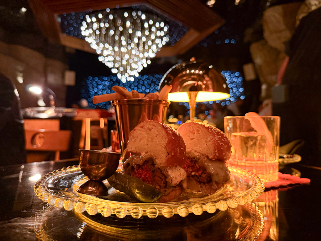 For the main event, the STARLITE BURGER (caramelized onions, gorgonzola, dijon mustard, dill pickles – served with fries) arrived perfectly composed. Dinner was as satisfying to eat as it was to look at.