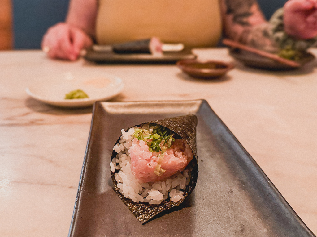 To finish out dinner, we each had a negihama hand roll (Japanese yellowtail, green onion).