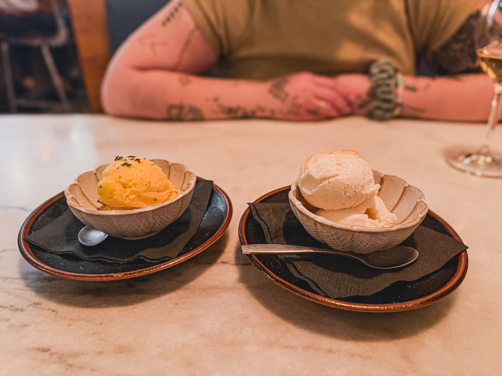We also shared the mandarin ginger and fresh mint Sorbet with the milk+ honey gelato with yuzu marmalade.