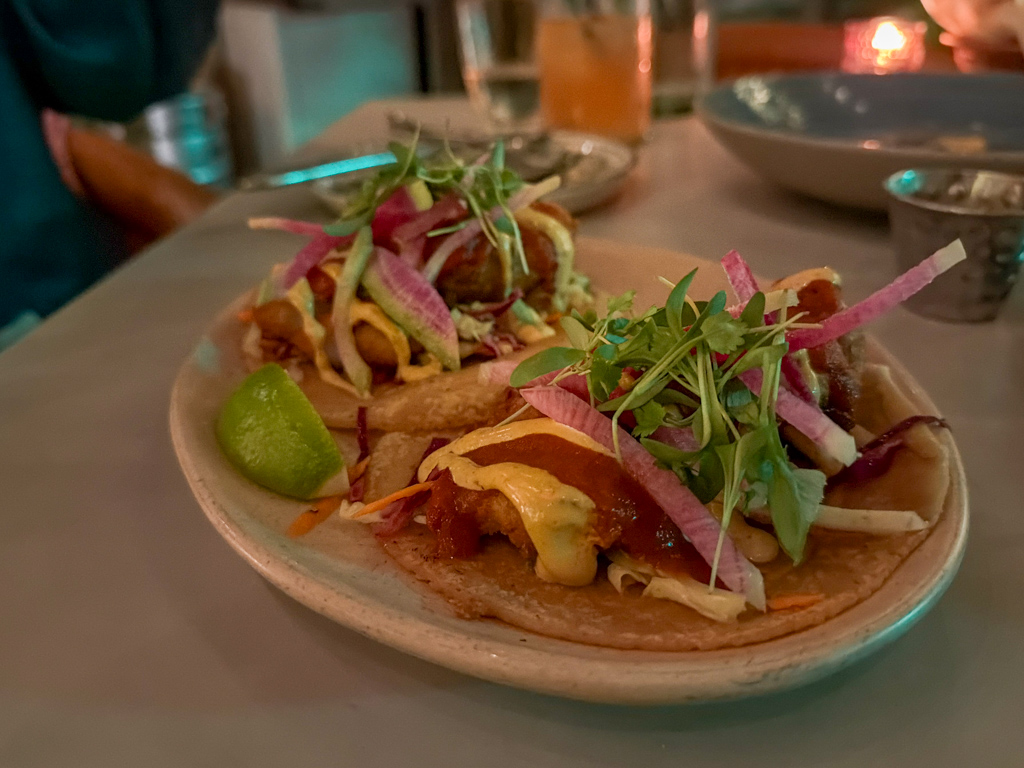Once we exchanged hellos and greetings, we were led to our seat. What I really appreciated is at Tacolina is a pleasantly designed covered outdoor space. It’s not as sensually beautiful as Castia or Mirate. But, it’s a local neighborhood vibe all its own.