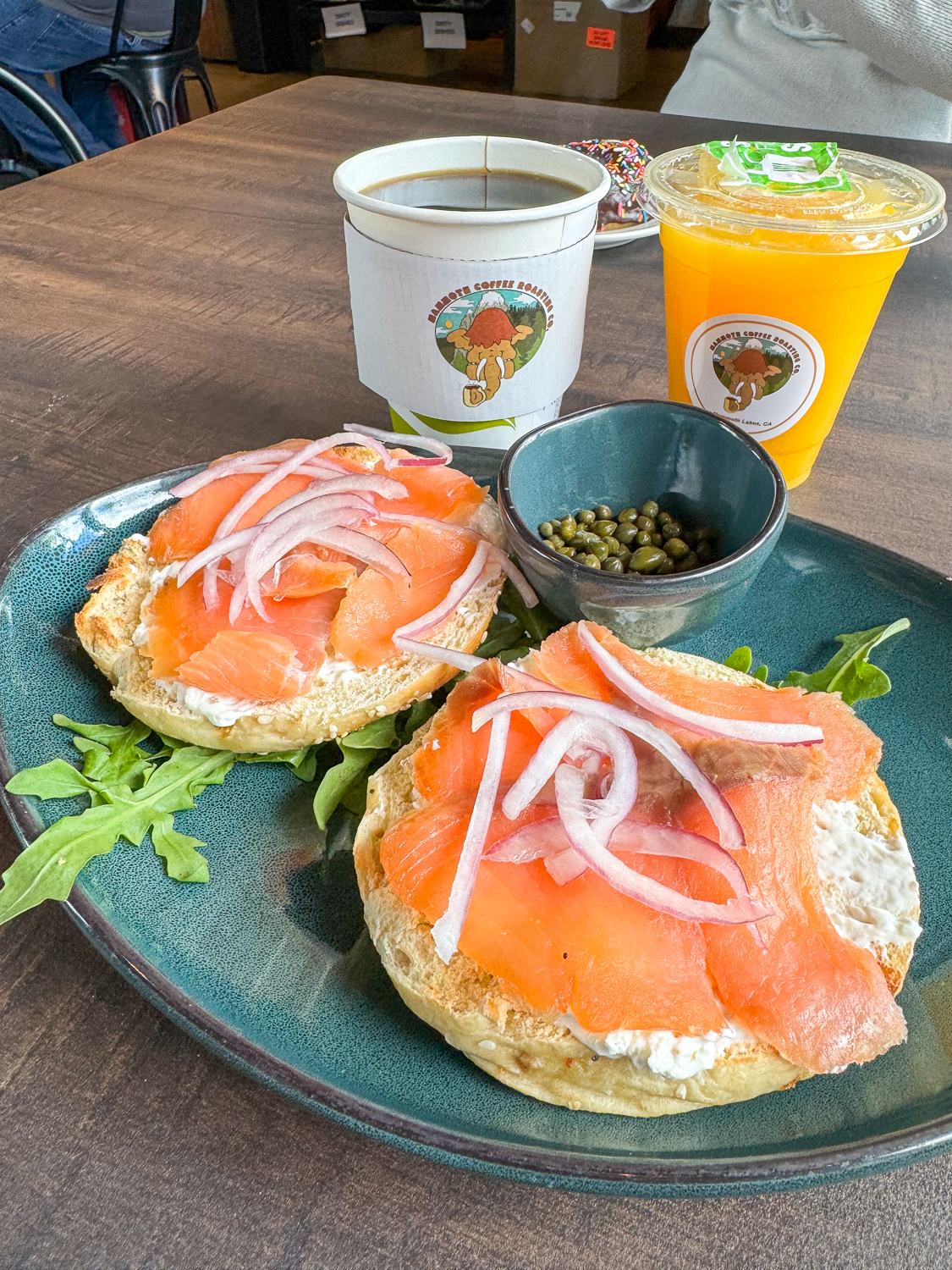 Coffee and breakfast at Mammoth Coffee Roasting Company was a lovely time to enjoy the local scene – over light bites – in Mammoth Lakes, California