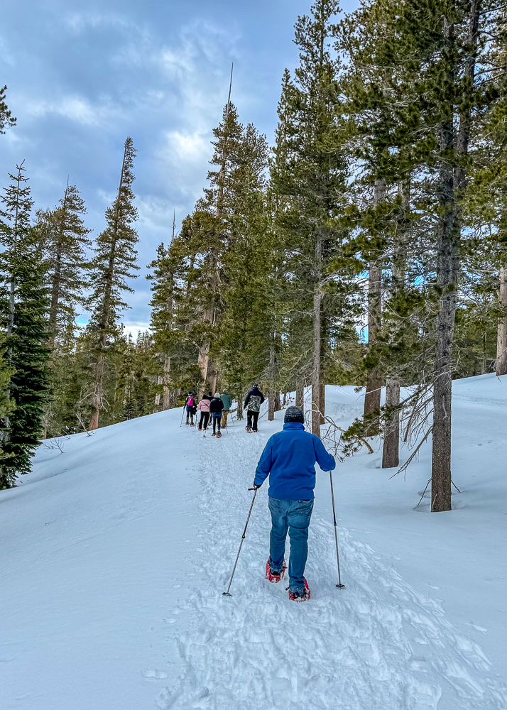Enjoying the guided snowshoeing tour with Tamarack Cross-Country Ski Center was a lovely way to enjoy the backcountry of Mammoth Lakes.