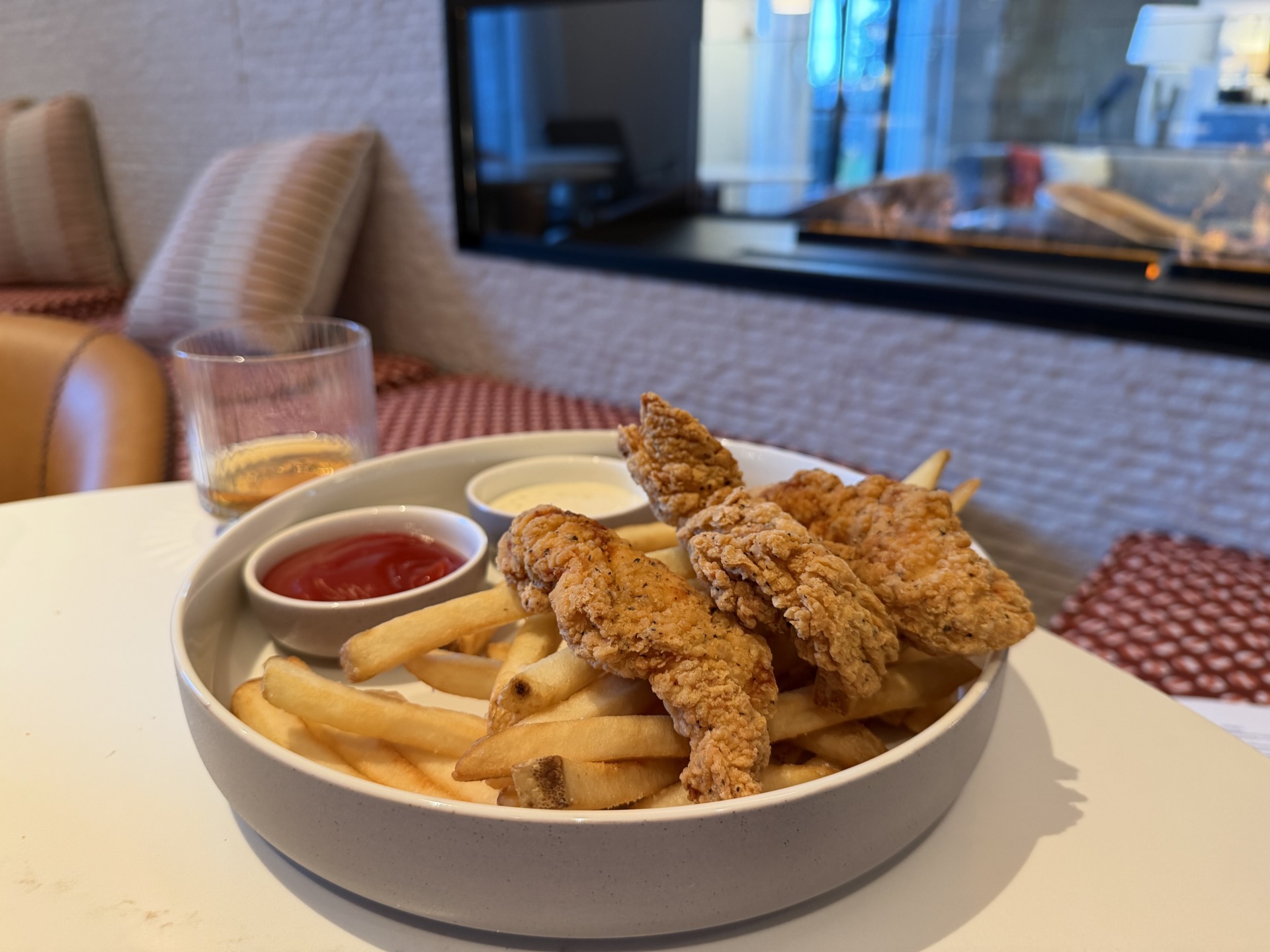 I decided on ordering the Chicken tenders and fries from the kids menu – and a straight pour of High West Distillery Straight Bourbon Whiskey.