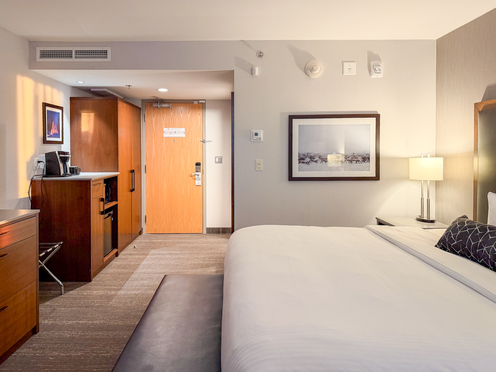 Originally, I looked into getting an Airbnb and renting a car for my stay in Yellowknife. However, once Amanda told me that she’d booked her stay at The Explorer Hotel, I quickly cancelled my Airbnb, car rental and rebooked my three night stay at The Explorer Hotel. I rationed that it was a local place, easy pick up for my tour groups and had a decently designed room that I looked forward to staying in.