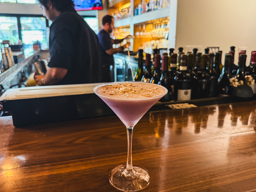 Setting down at the bar, I immediately inquired about the EMPRESS ISLAND (Empress Indigo Gin, cream of coconut, lychee, fresh lemon, toasted coconut). As I’d wanted it served up, without ice, he immediately obliged and even remarked that it looked better that way.