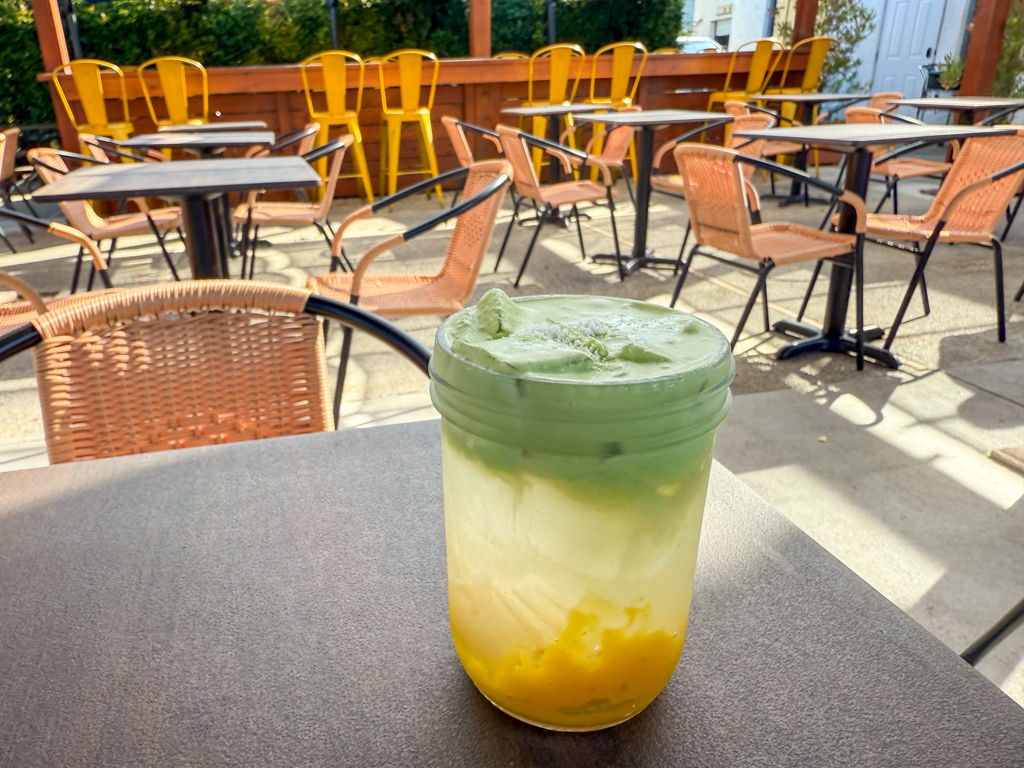 I also ordered a glass of the Tropical Mango Macha (house made mango syrup, coconut water, matcha cold foam, sprinkle of coconut).