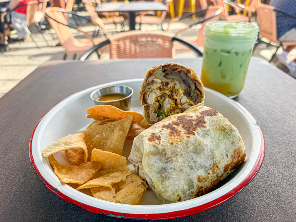 Browsing the menu, I zero’d in on the Brunch Burritos section. The host absolutely RAVED about the Fried Chicken (fried chicken, scrambled eggs, American cheese, shop potatoes, avocado, spicy mayo). However, would it taste just as delicious with my modifications of no eggs and switching the American cheese to havarti?