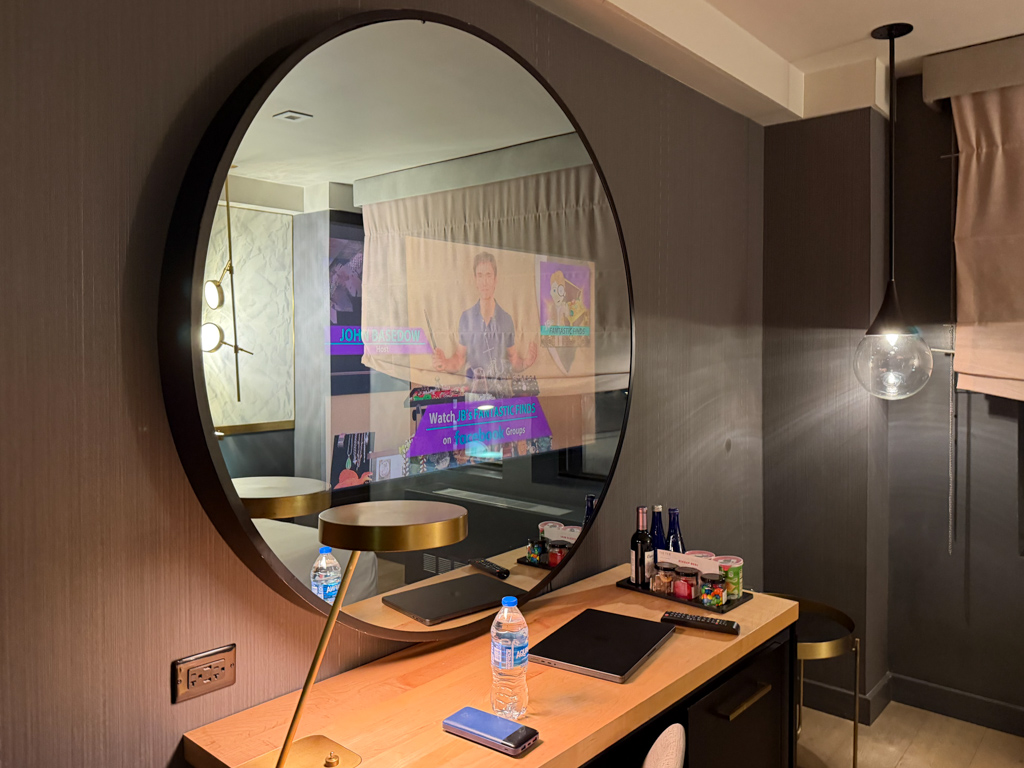 I also loved that the giant mirror also held the television. This was a nice touch that added to the aesthetics of the space.