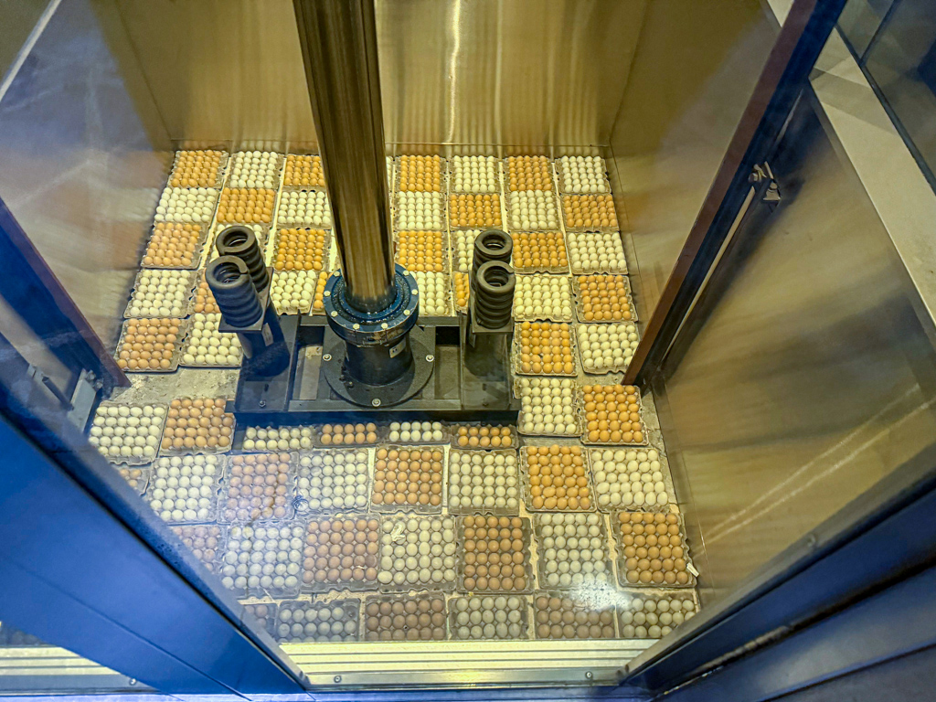 Another staff member took me downstairs, and told me the lore of why there were rows of eggs in the elevator shaft. The answer? A node to one of the investors. While also showing how smooth the elevators are.
