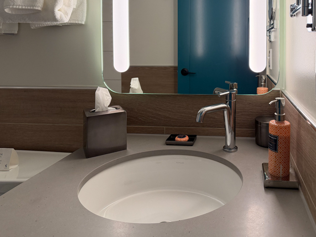 The bathroom was fine. It was tastefully designed and matched the overall vibe of the room.