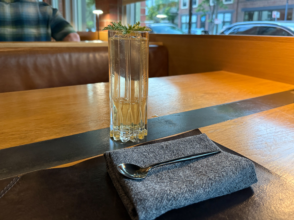 Pulling into the neighborhood, street parking was a breeze. A few steps later I crossed into The Wolf’s Tailor’s beautiful garden, checked in with the host, and settled into the cocktail lounge to await my seating.