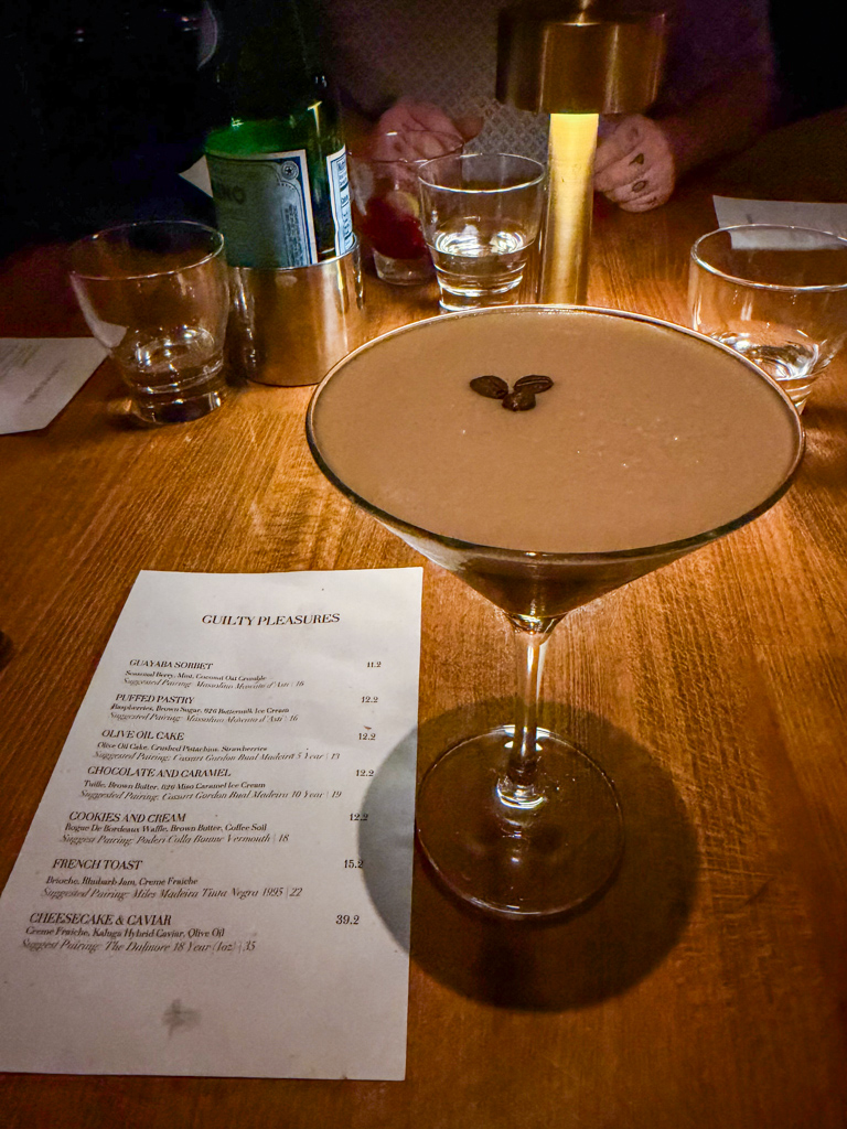 For dessert, the ESPRESSO MARTINI (Hardy VSOP Cognac, Santa Teresa Coffee Cask, Mario’s Hard Espresso, Demerara Simple Syrup) was the perfect accompaniment to the CHOCOLATE AND CARAMEL (Tuille, Brown Butter, 626 Miso Caramel lce Cream).