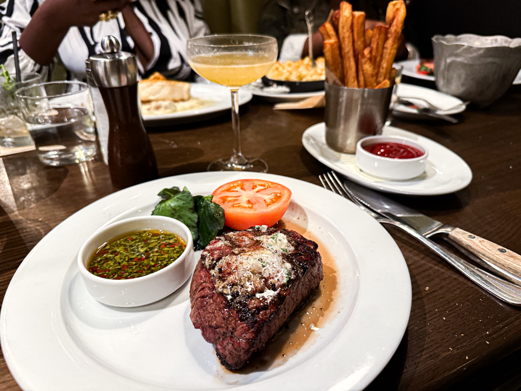 The FILET MIGNON “double r ranch” 8 oz with a side of FRENCH FRIES was absolutely perfect. This was exactly what I needed to satisfy my need for more protein. A staff member brought of little cups of Chipotle Aioli  and Harissa Aioli for me to dip and savor the fries in.