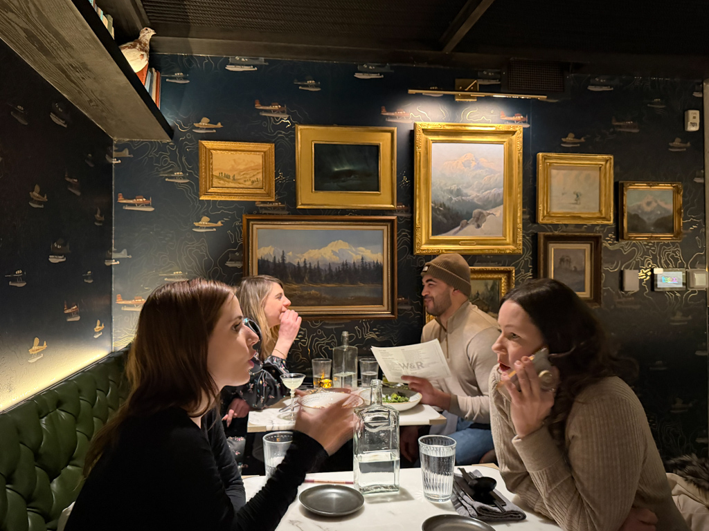 What truly defined the experience was the staff. Tyler spoke with me about fishing and Native politics, sharing his journey from Texas to Colorado to Oregon before settling in Alaska. Derek, a Fairbanks native, enthralled us with travel stories and his reasons for staying in Alaska. Their warmth turned a great meal into a memorable connection.