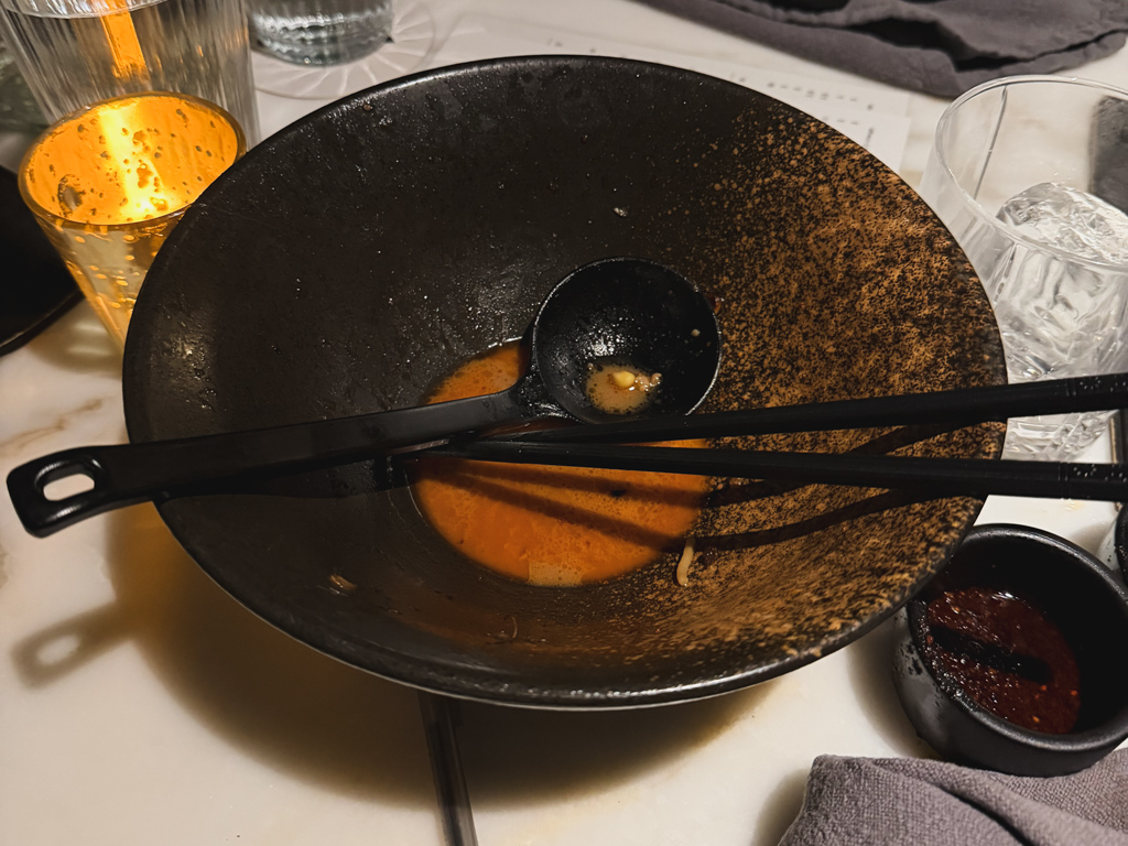 With every sip of the cocktail, the aromatics of the woody scent from the ice added complexity to the drink. The sesame wash added a distinct dimension as well. It was, quite simply, some of the best ramen I’ve ever had – leaving me genuinely annoyed that the restaurant didn’t exist back home.